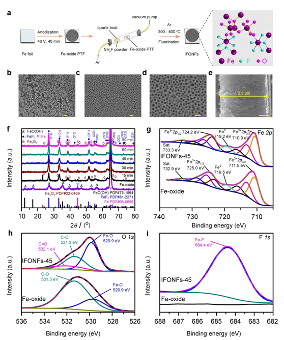 日前,晶态材料研究所张献明团队范修军课题组在非贵金属双功能电催化材料研究方面取得重要进展,相关成果以山西大学为第一单位在线发表于国际顶级期刊 Nature子刊Nat. Commun.,论文标题为《Defect-Enriched Iron Fluoride-Oxide Nanoporous Thin Films Bifunctional Catalyst for Water Splitting》(富缺陷氟化铁-氧化铁纳米多孔薄膜双功能催化剂)。